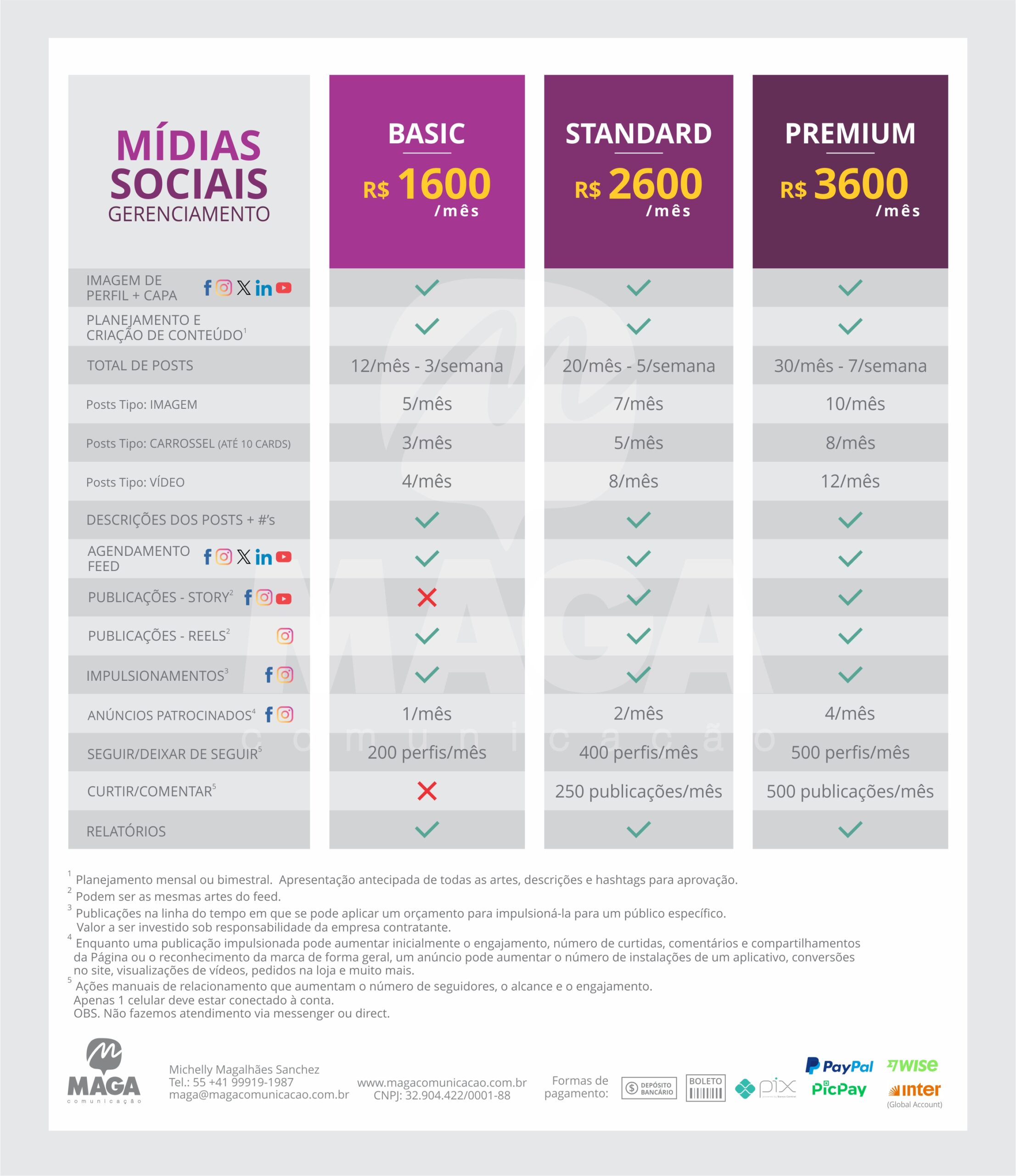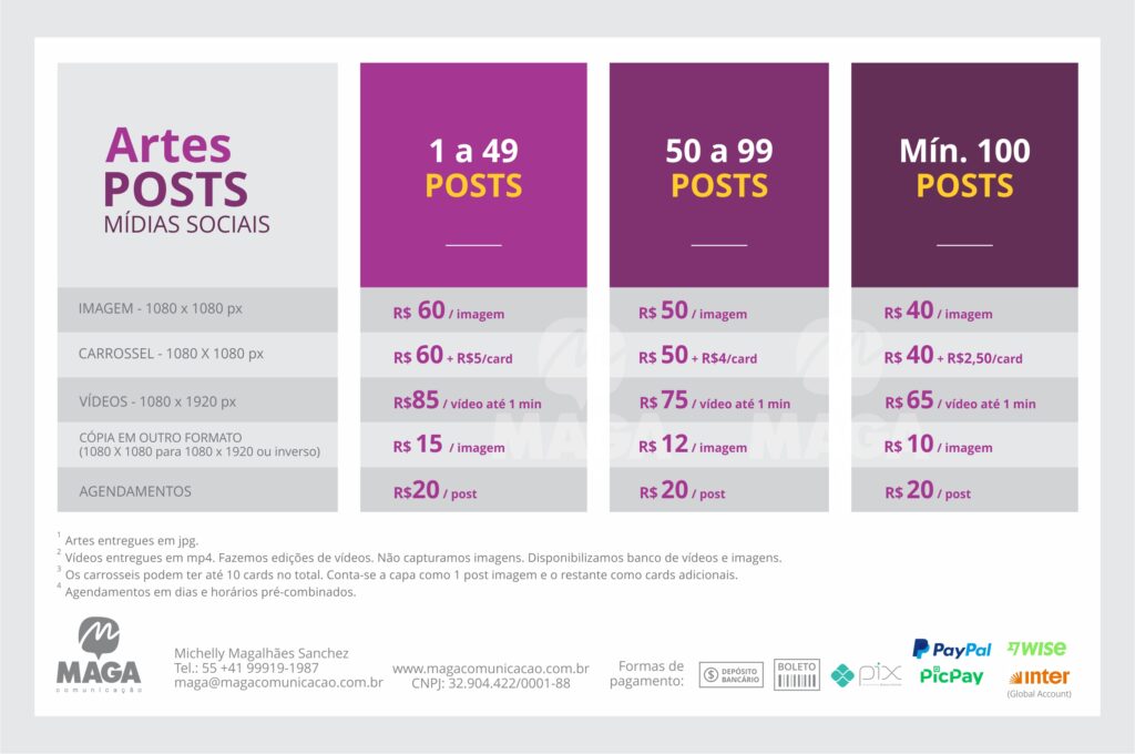 A MAGA faz as artes e envia para você postar.