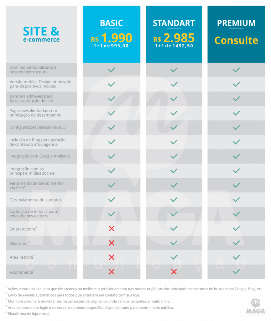 A MAGA faz tudo, do design à programação. E você pode escolher sua plataforma de preferência (WordPress, Wix, Shopify, Nuvemshop, Tray, etc)